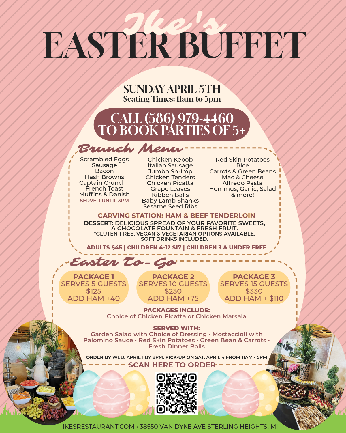 Ike's Restaurant has been in business since June of 1991. Ike's is located on the Southeast corner of 17 Mile and Van Dyke. Ike El-Alam, owner and hands-on proprietor of this family-owned business, has always taken pride in serving authentic and traditional Lebanese dishes as well as American, Greek, and Italian.