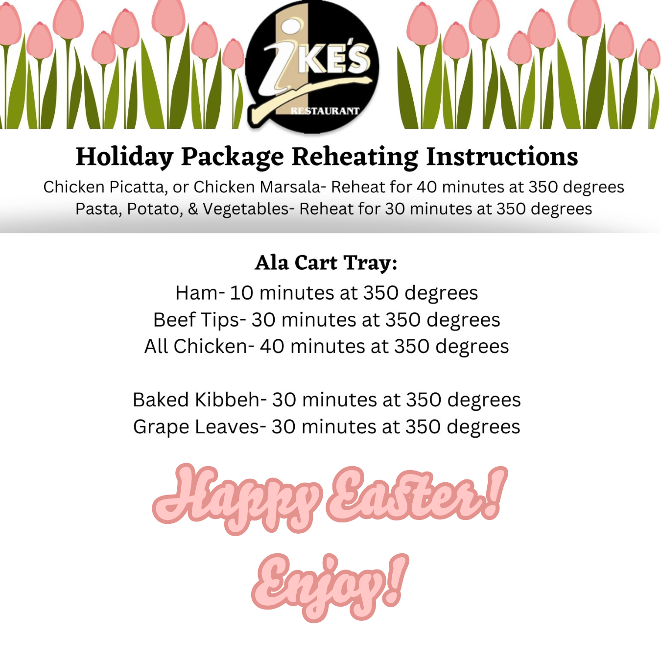 Easter Reheating Instructions